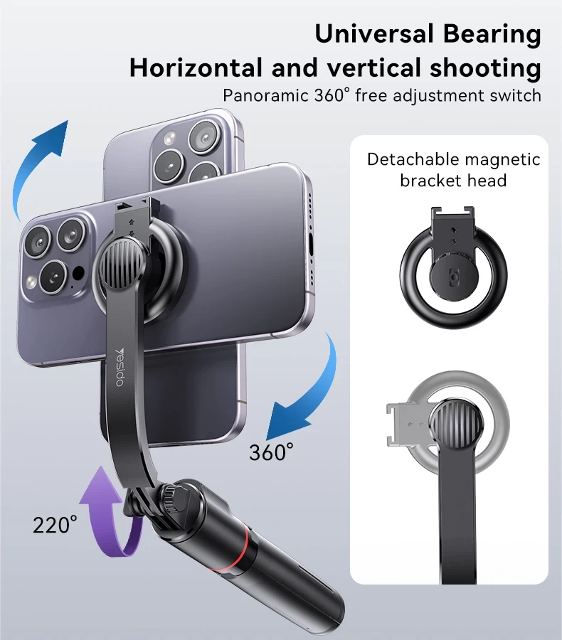 حامل ثلاثي القوائم مغناطيسي متعدد الأغراض من Yesido SF19 360 قابل للتعديل مصنوع من سبائك الألومنيوم مع حلقتين مغناطيسيتين.