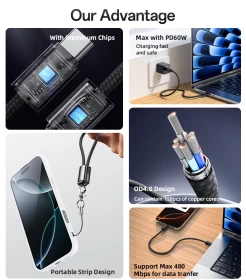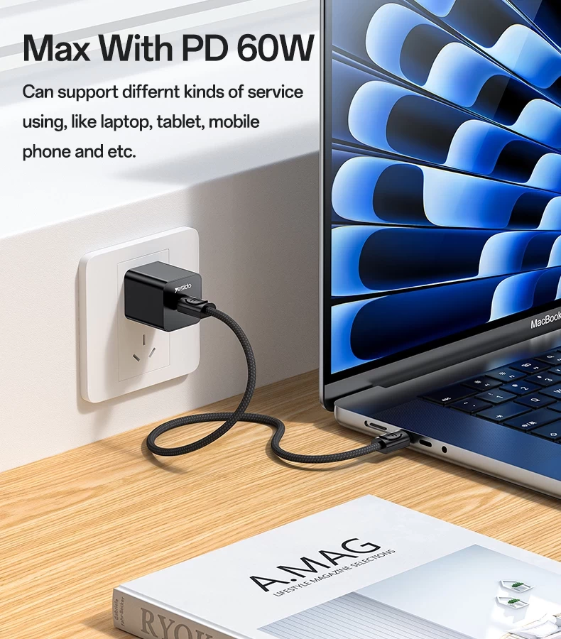 يدعم الشحن بقوة ٦٠ واط. يدعم الهواتف، والأجهزة اللوحية، وأجهزة اللابنوب، وغيرها من الأجهزة.