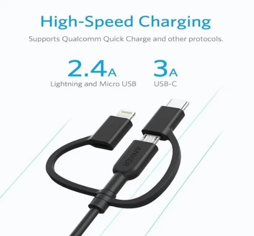 كابل أنكر 3 في 1 باور لاين 2 - 3 قدم - أسود - A8436H12