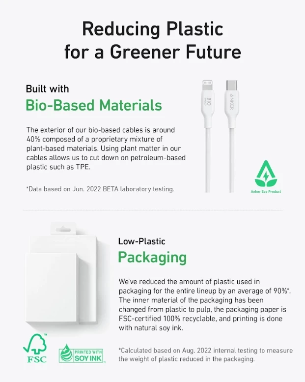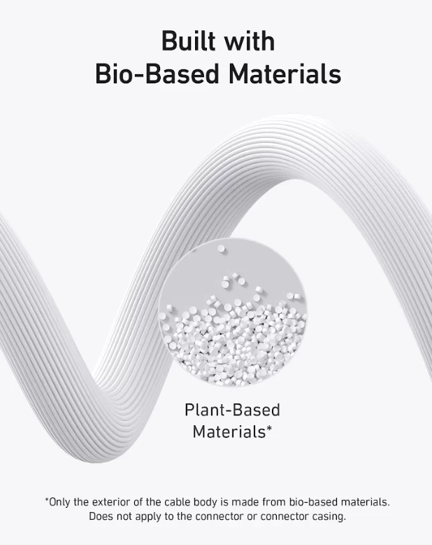 • يتكون الجزء الخارجي من الكابلات القائمة على أساس حيوي بنسبة 40 ٪ تقريبًا من خليط خاص من المواد النباتية.