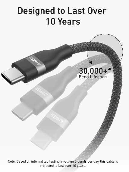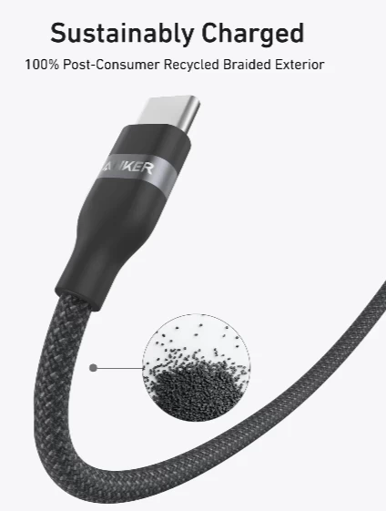 كابل يو اس بي-سي الى يو اس بي- سي من انكر، 1.8 مترين، 240 واط، A82E2H12 - أسود