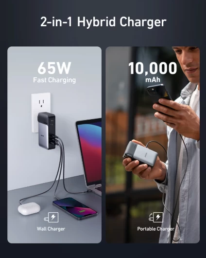 Anker 733 Power Bank (GaN Prime Power Core 65W), 10000mAh, 30W USB-C Portable Charger with 65W Wall Charger, A1651211- Black