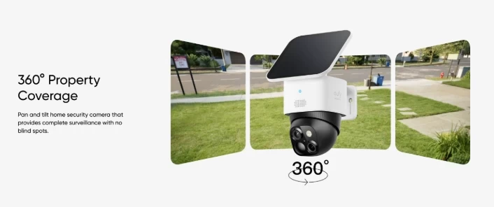 • 360° Guardian, No Blind Spots: Say goodbye to blind spots with full home coverage. Enjoy 360° Pan & Tilt Surveillance , check your front porch, monitor your backyard, and keep an eye on the driveway with ease.