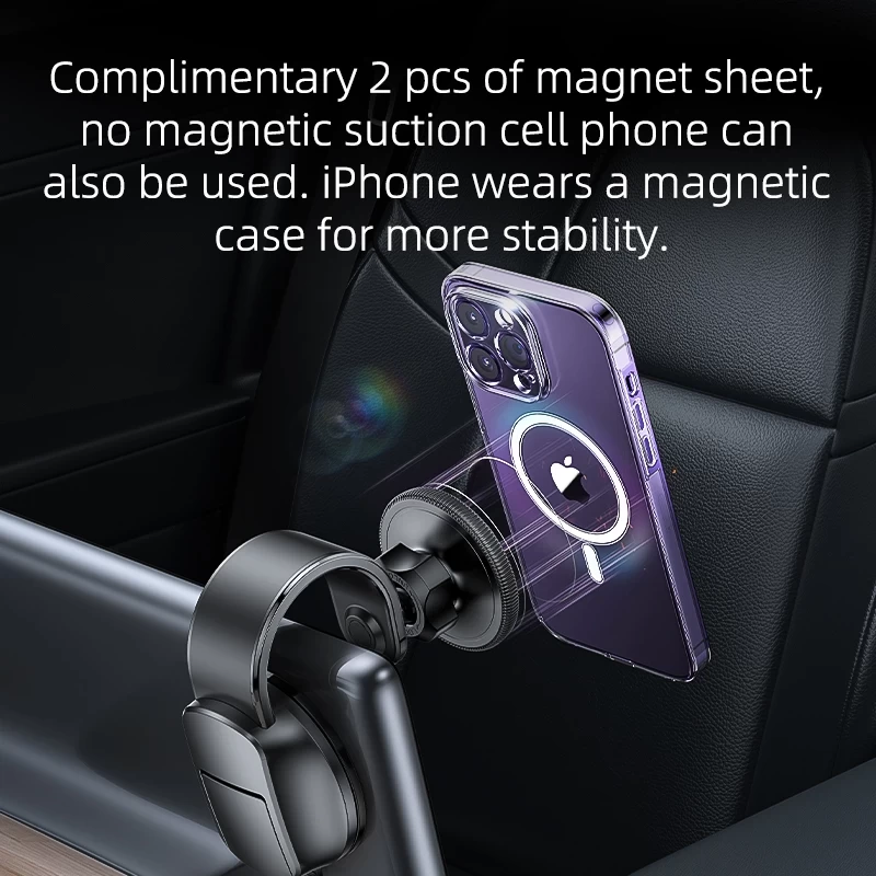 • Equipped with a strong suction cup, this holder easily attaches to your car’s windshield or dashboard