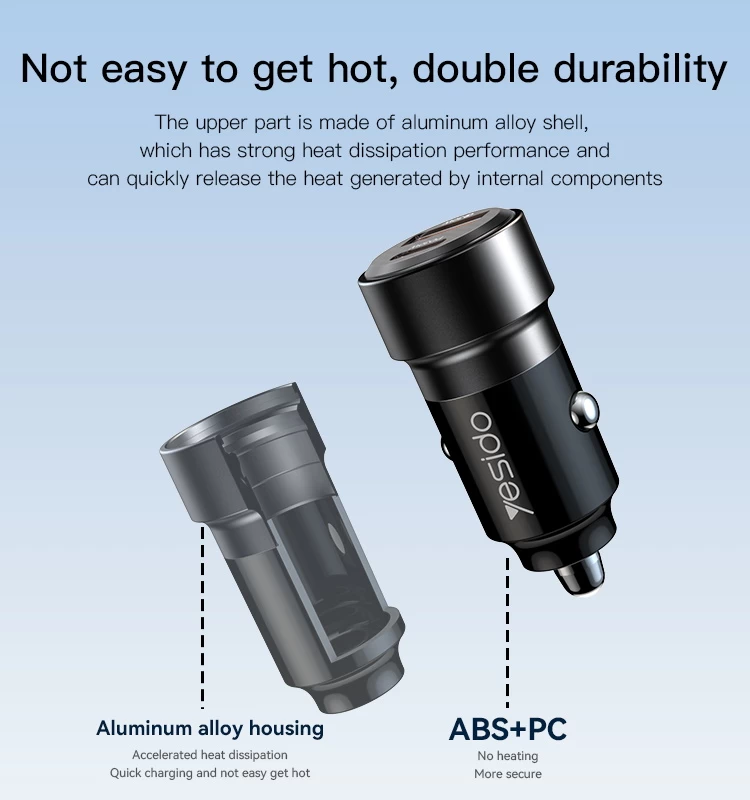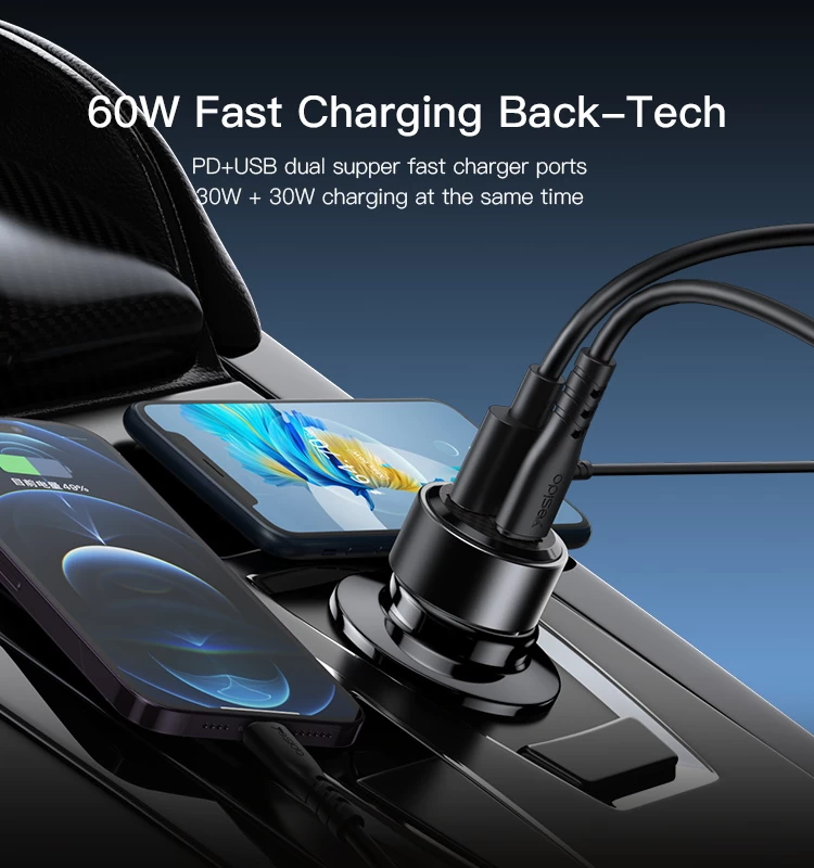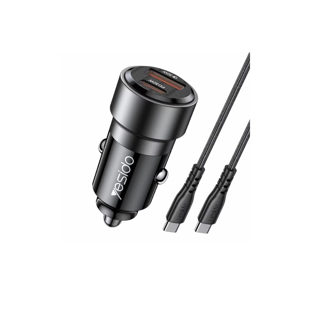 Yesido Y55 With Double Type-C/USB-C Port Line Car Charger QC3.0+PD30W Type-C/USB-C+USB Dual Port Quick Charge(Black)
