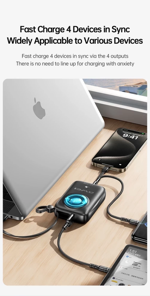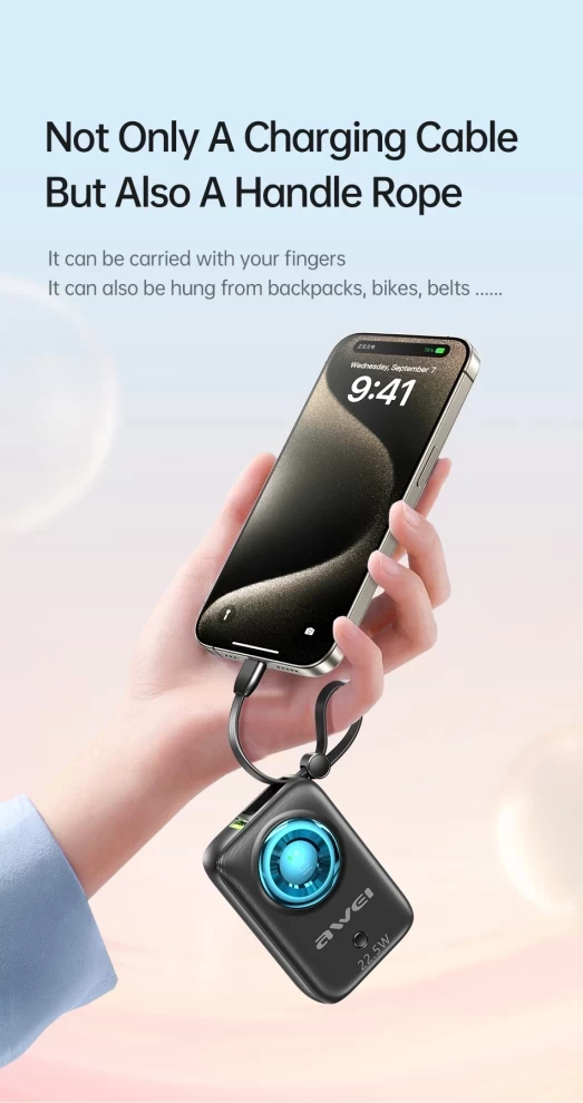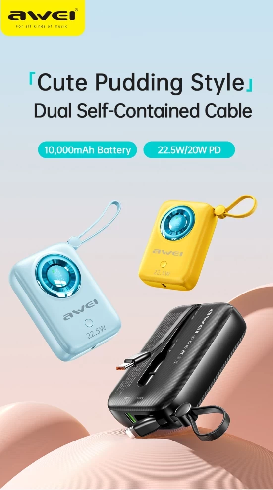 Awei 10000 mAh POWER BANK Mini Fast Charging With Built in cable