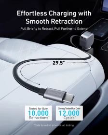 Anker Nano Car Charger (75W, USB-C Port, Built-In Retractable USB-C Cable) Gray