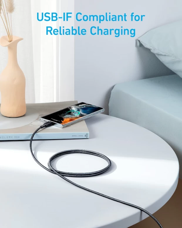 Anker 322 USB-C to USB-C Cable 60W Braided (0.9m/3ft) -Black