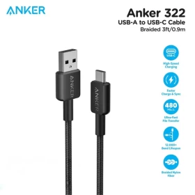 Anker 322 USB-A to USB-C Cable (3ft Braided) Black