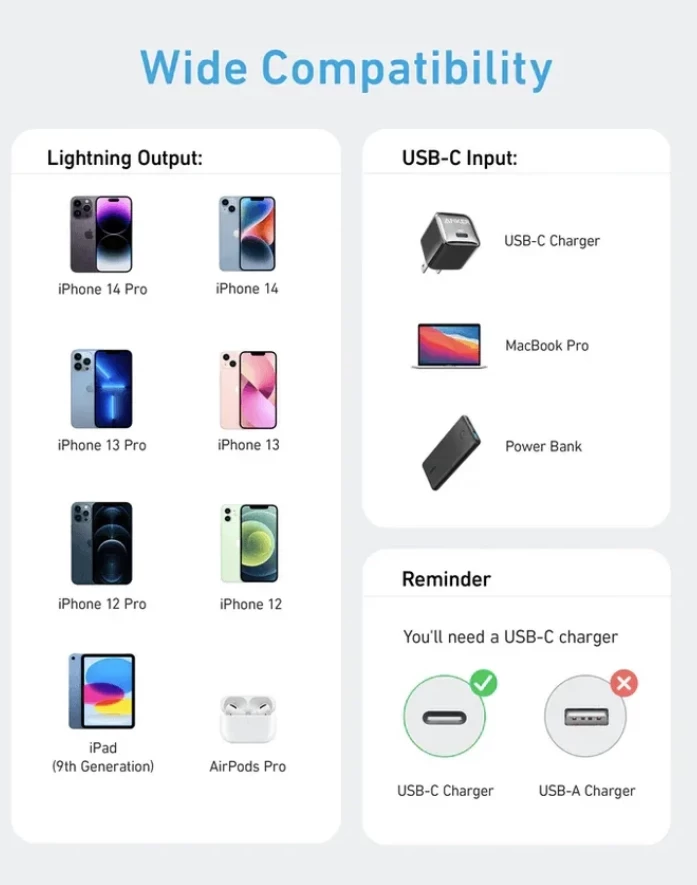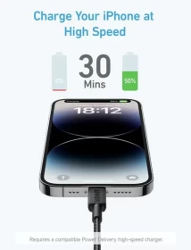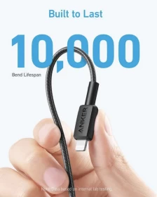 Anker 322 USB-C to Lightning Cable  (3ft Braided)  Black  - .90m