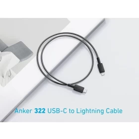 Anker 322 USB-C to Lightning Cable (3ft Braided) Black - .90m